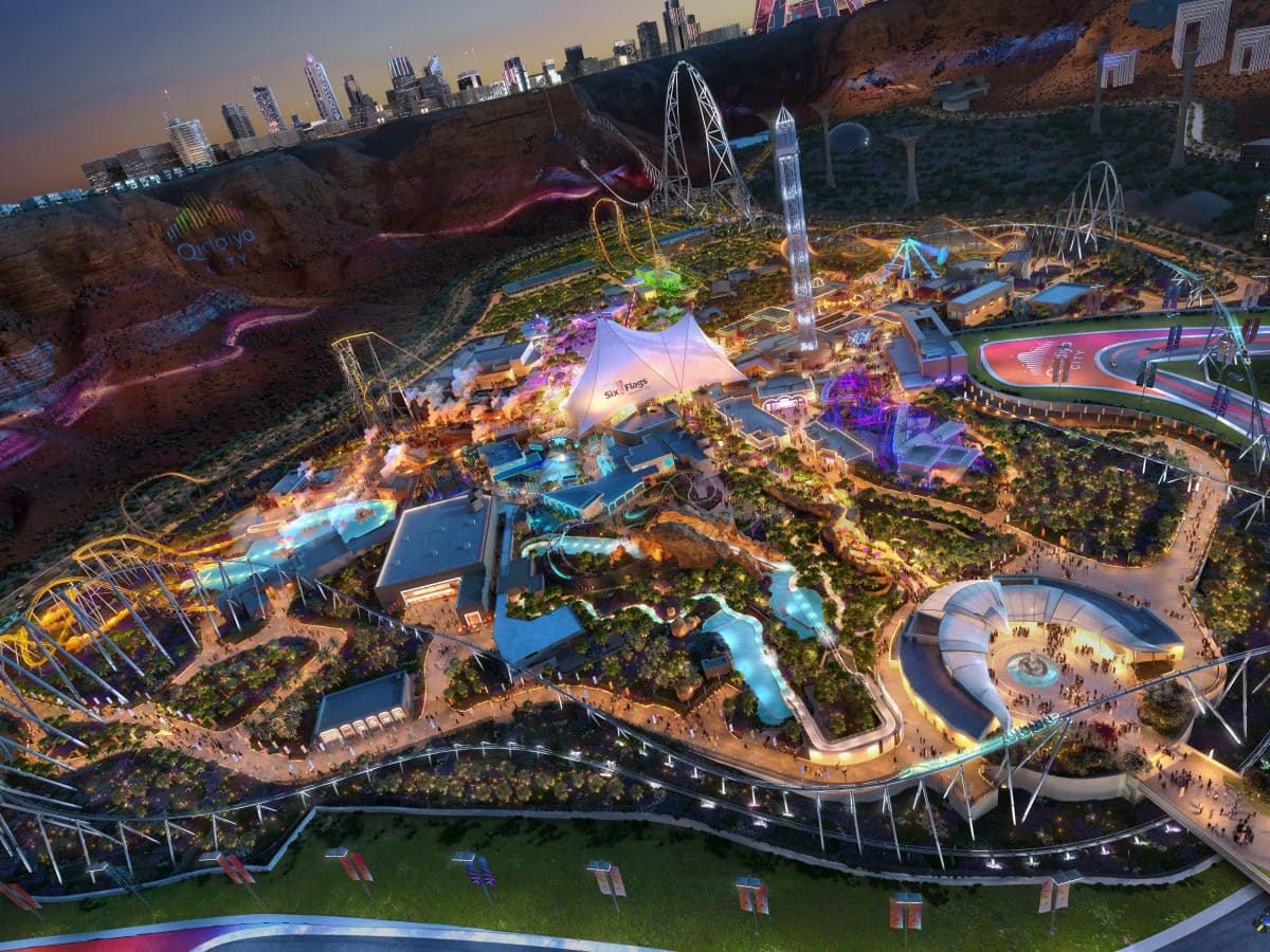 O primeiro Six Flags fora da Amrica do Norte. O Six Flags Qiddiya City um enorme parque de diverses de 320.000 metros quadrados, situado em um penhasco montanhoso no deserto, nos arredores de Riade.