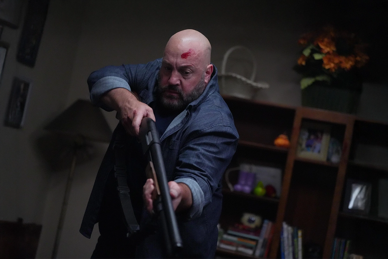 É nesse cenário que surge Kevin James, interpretando o marido cuja rotina doméstica é apenas a superfície de uma vida dupla marcada por escolhas passadas que ainda lançam sombras longas. Ele tenta manter o controle, mas cada gesto revela o acúmulo de uma ansiedade nada confessada. James trabalha com um humor contido que só se completa quando o vemos tentando ser firme diante de uma normalidade que nunca pertenceu a ele. A expressão endurecida que carrega como se fosse parte de seu uniforme emocional acaba funcionando como um mapa do desconforto constante que o personagem tenta, sem sucesso, naturalizar.