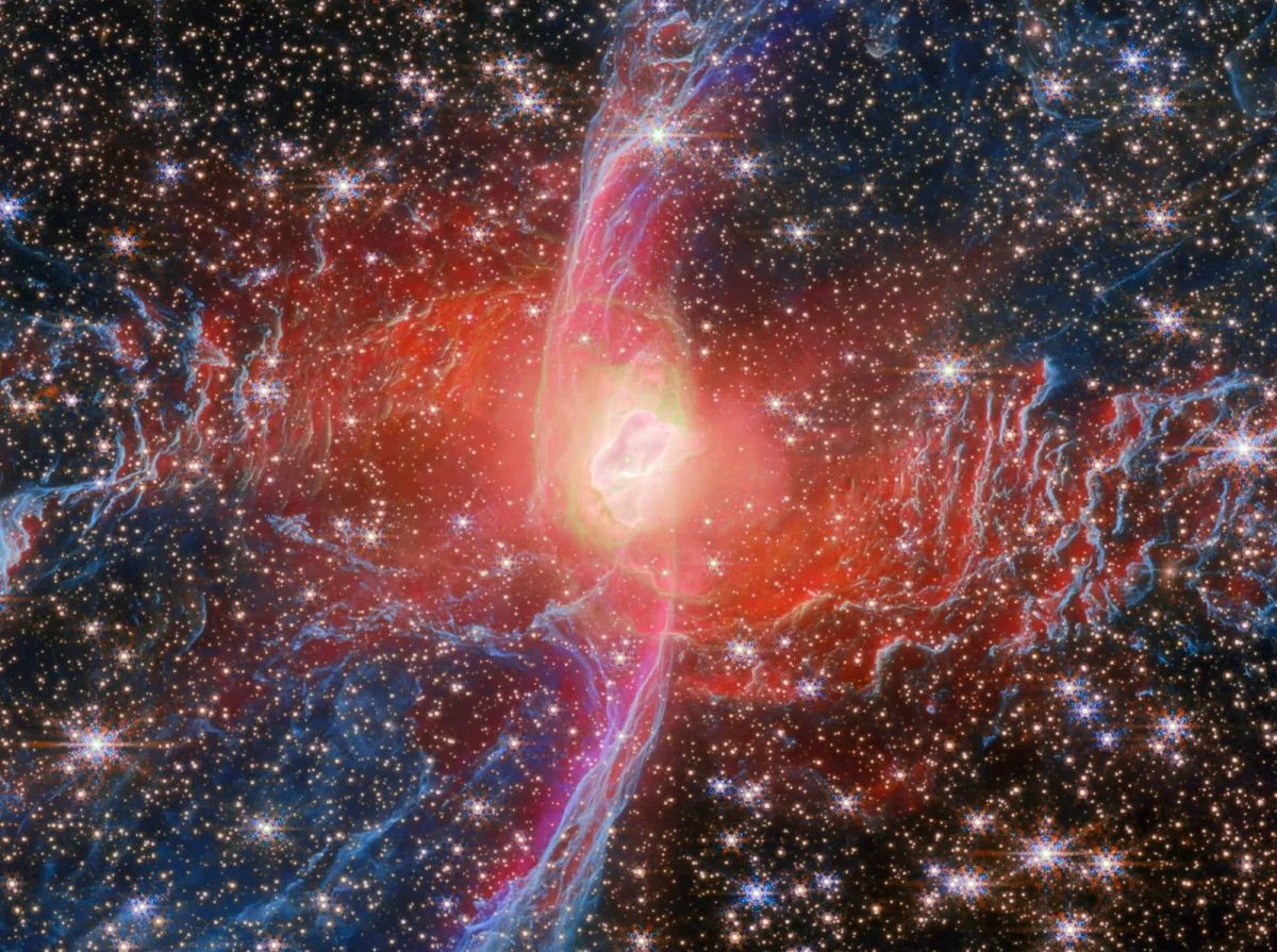 A imagem deslumbrante da nebulosa da Aranha-Vermelha, capturada pelo James Webb, exibe uma vibrante profuso de cores e luz enquanto uma estrela moribunda expele suas camadas externas.
