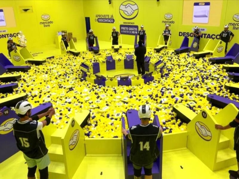 Ao longo da competição, sempre que um sinal sonoro é acionado, os participantes devem saltar do seu trampolim, buscar um cartão na piscina de bolinhas e posicioná-lo no local indicado.