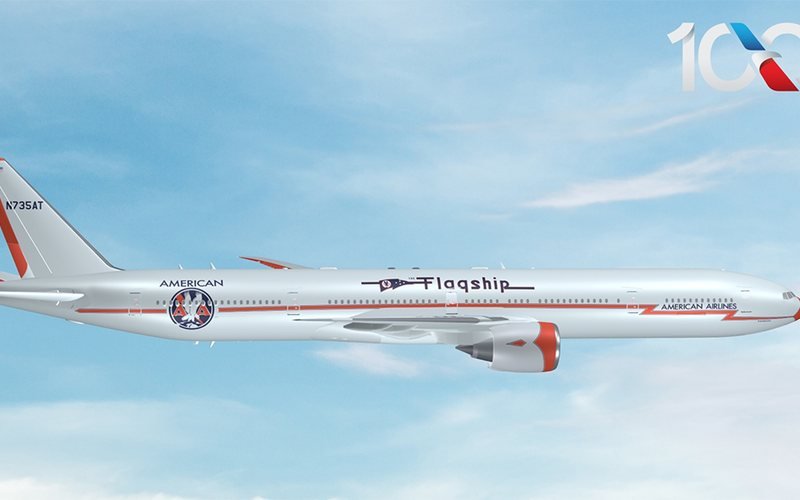 A American Airlines revelou um Boeing 777-300 com pintura especial em homenagem ao seu centenário. Aeronave poderá vir ao Brasil