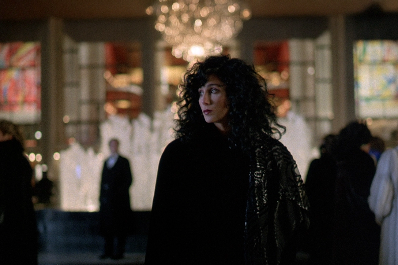 A mudança acontece quando Johnny viaja para a Itália para cuidar da mãe e entrega a Loretta a tarefa de convidar o irmão Ronny, interpretado por Nicolas Cage, para o casamento. A aproximação entre os dois não resulta de charme, sedução ou estratégia; ocorre porque Ronny vive em estado de intensidade constante, como se tudo ao redor pudesse ruir a qualquer instante. A relação perdida entre os irmãos, interrompida por ressentimentos antigos, dá a Loretta a falsa impressão de que conseguirá apenas cumprir a missão e voltar para sua rotina imutável. Mas o encontro foge ao controle: Ronny representa tudo aquilo que ela tenta evitar, alguém movido por impulsos e convicções que dispensam explicações. Ele carrega no corpo e na fala um tipo de energia que desmonta qualquer resistência racional, e a dinâmica entre os dois evolui numa velocidade que contraria a lógica que Loretta tenta preservar.