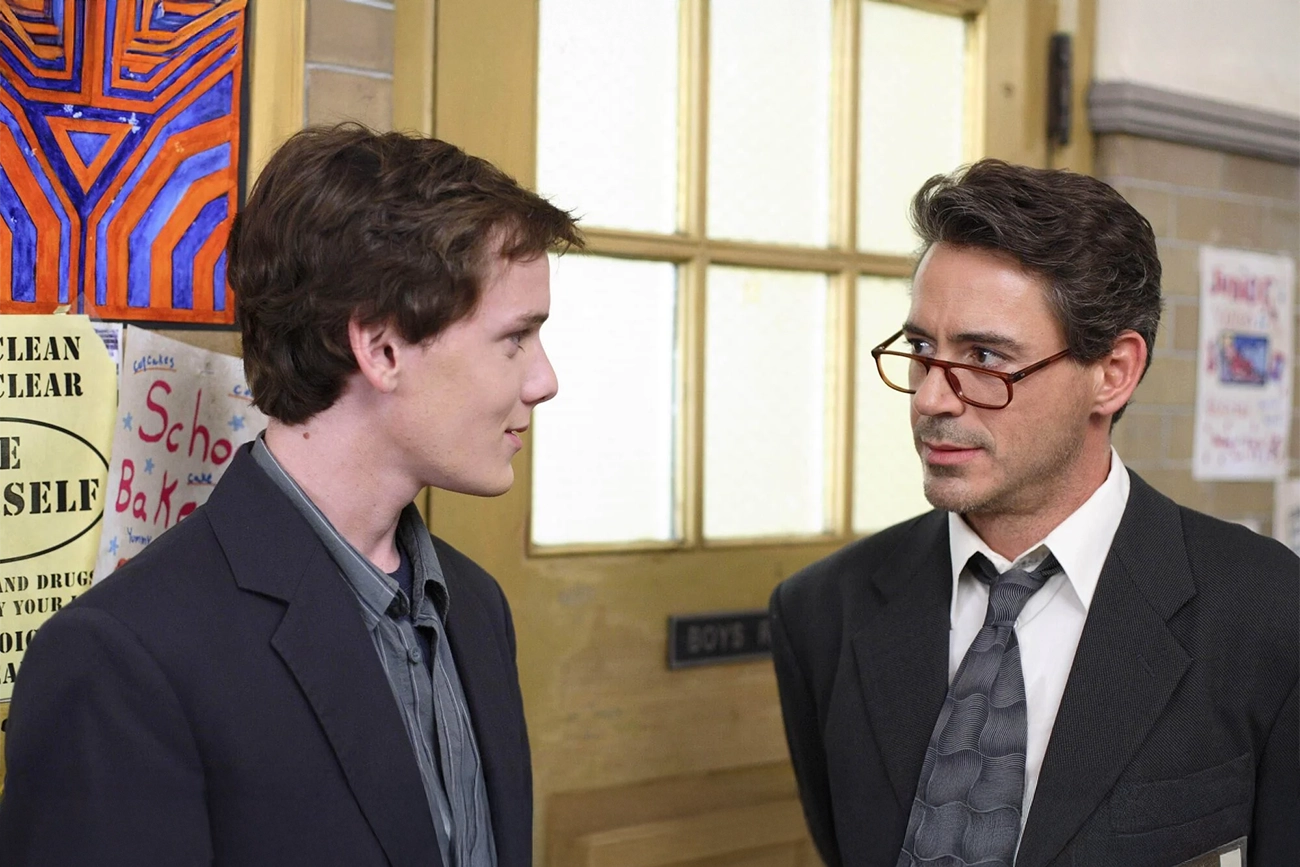 O sucesso repentino, claro, chama atenção. O diretor Nathan Gardner, interpretado por Robert Downey Jr. com energia nervosa e vulnerável, não é um vilão caricatural. Ele é um homem pressionado, lidando com problemas pessoais e tentando manter autoridade sobre uma escola inquieta. Quando percebe que algo circula pelos corredores além de cadernos e mochilas, ele observa, questiona e aperta o cerco. A tensão não vem de grandes discursos, mas da possibilidade concreta de suspensão, de perda de espaço, de mais uma expulsão no currículo de Charlie.