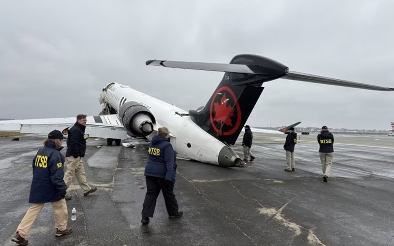 Comissária sobrevive após ser ejetada de CRJ-900 da Air Canada acidentado no aeroporto de LaGuardia, em Nova York
