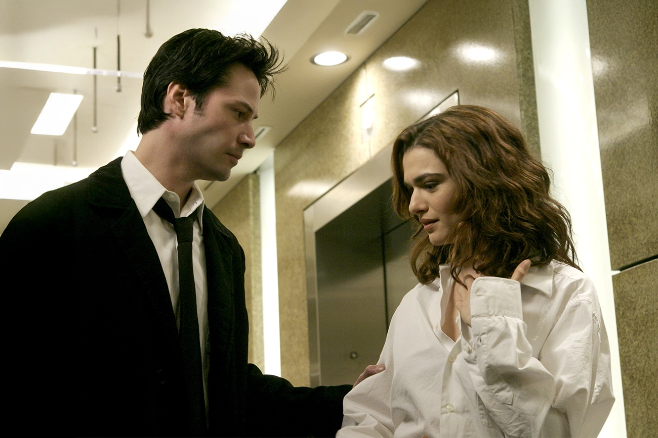 A entrada de Angela Dodson, vivida por Rachel Weisz, introduz o eixo investigativo do enredo. A policial busca respostas para o suicídio da irmã gêmea Isabel, também interpretada por Weisz, e se recusa a aceitar explicações sobrenaturais. Essa resistência inicial não serve apenas como contraste narrativo, mas como ponto de ancoragem racional para o espectador. A trajetória de Angela é menos sobre fé e mais sobre coerência: compreender um sistema que opera à margem das leis humanas. A relação com Constantine se estabelece por necessidade mútua, não por afinidade, e essa dinâmica evita romantizações desnecessárias.
