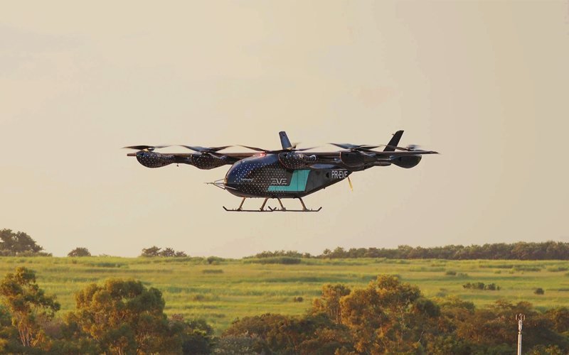 A Eve Air Mobility, subsidiária da Embraer, completou 50 voos de teste com sua aeronave elétrica de pouso e decolagem vertical (eVTOL0 no Brasil