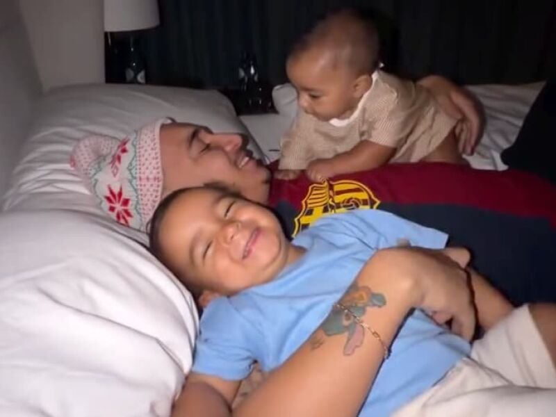 O artista, que frequentemente compartilha cliques em família nas redes sociais mostrando a rotina da paternidade, postou um vídeo na cama, cercado pelos menos, que abraçam e beijam o pai.
