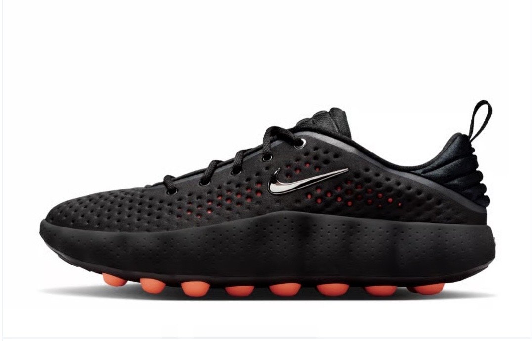A espuma nodular, marca registrada da linha, segue como elemento central e aparece agora em contraste com o acabamento preto e os detalhes em laranja na palmilha, reforçando a identidade visual que ajudou a diferenciar o Nike Mind de outros lançamentos recentes da marca.