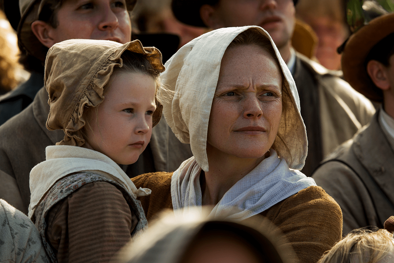 Já na abertura, trabalhadores largam oficinas e teares, pegam a estrada e começam a fazer a conta das horas fora do serviço. Eles atravessam estradas irregulares e calculam quanto tempo podem ficar longe para participar de reuniões públicas. A cada saída de casa, a conta volta em forma de fome quando o dinheiro do dia não entra, de pernas pesadas depois de quilômetros e de retorno obrigatório, ainda com tarefa pendente. Em “Peterloo”, política começa quando alguém escolhe sair do turno, encarar a chuva e apostar que a praça vai ouvir.
