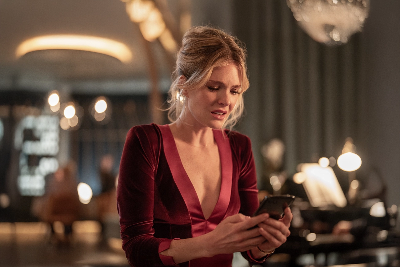 O refinamento estético não está ali para enfeitar; está para tensionar. A iluminação dramática de Simon Magee alterna entre sedução e ameaça. O enquadramento ora expõe, ora aprisiona. Há um jogo perverso com o foco: quando a atenção se concentra demais, perdemos o que realmente importa na borda da cena, metáfora precisa de qualquer relação iniciada com filtros e expectativas. O som, quando desaparece, revela o que ninguém quer ouvir: aquela conversa que não deveria continuar, aquele pedido que já passou da linha, aquele medo que ninguém digita.