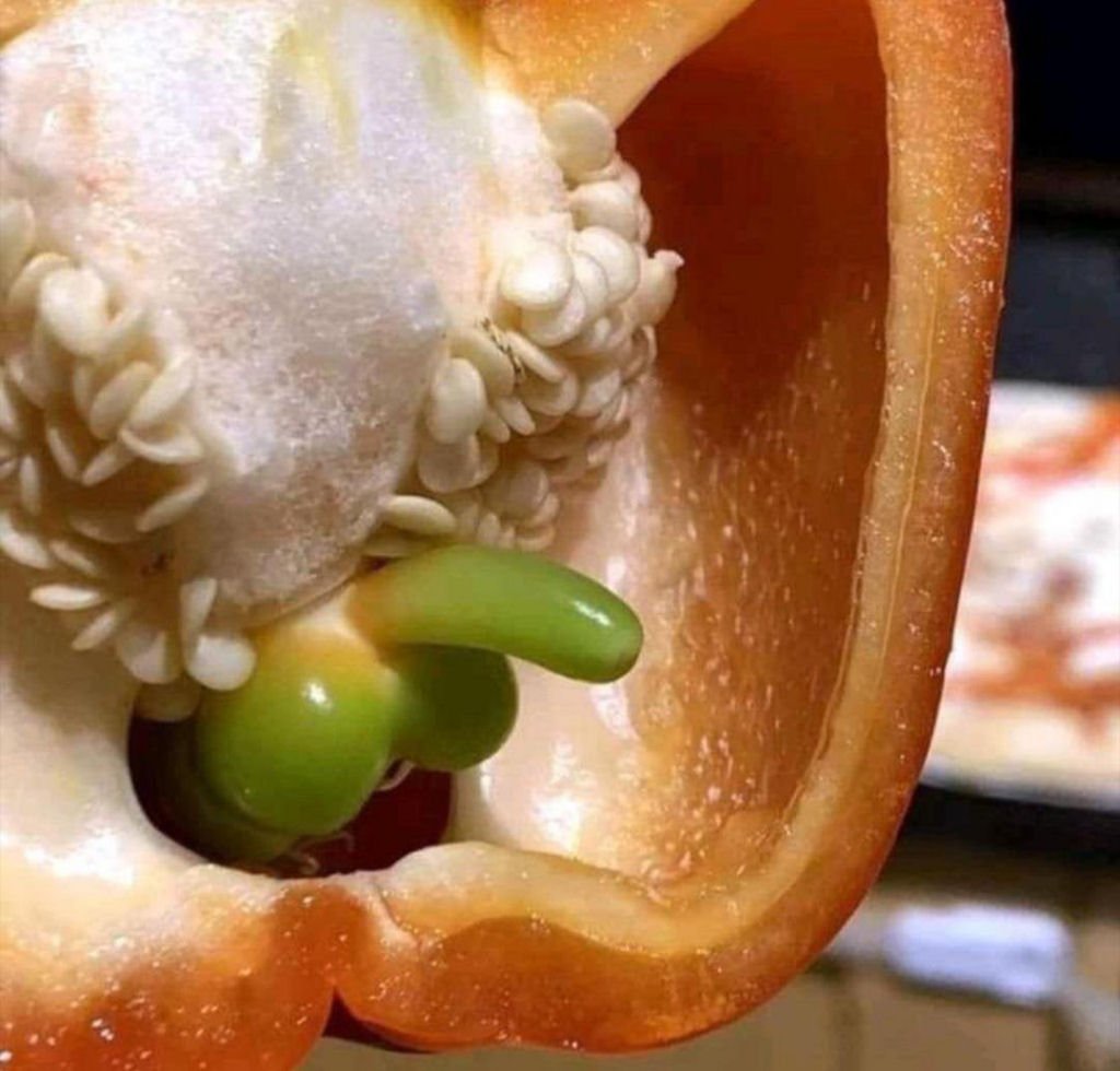 Estamos diante do Christopher Nolan da hortifrúti. É um pimentão dentro de um pimentão, dentro de uma sacola plástica, dentro da sua geladeira. A ciência chama de “proliferação interna“, mas eu prefiro chamar de “incepimentão“”. Só falta a trilha sonora dramática de fundo quando você passa a faca.