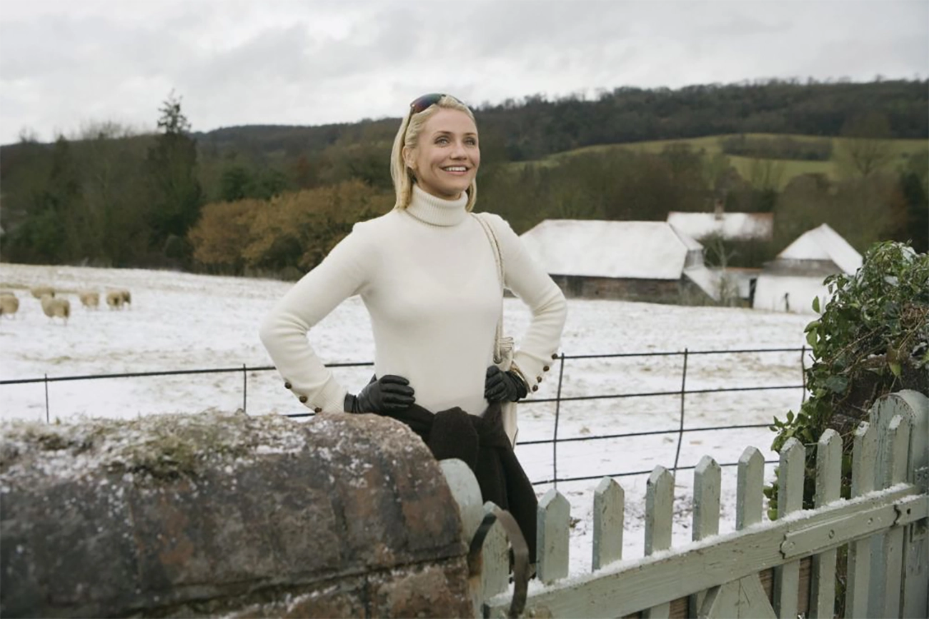 A engrenagem narrativa parte de um impulso reconhecível: o desejo de desaparecer quando o afeto vira humilhação. Amanda Woods, vivida por Cameron Diaz, descobre que o namorado a traiu e reage com a única estratégia que domina bem: controle, velocidade e fuga. Iris Simpkins, interpretada por Kate Winslet, ocupa o polo oposto. Ela aceita o abandono com uma docilidade quase dolorosa, mesmo depois de saber que o homem por quem esteve apaixonada, Jasper, papel de Rufus Sewell, vai se casar com outra. O encontro das duas acontece por meio de um site de troca de casas, artifício improvável, mas funcional, que lança Amanda da Los Angeles solar para o interior gelado da Inglaterra, enquanto Iris atravessa o Atlântico rumo a uma mansão californiana. Não se trata apenas de turismo emocional. A troca de cenários funciona como uma suspensão temporária das identidades que ambas aprenderam a sustentar para sobreviver.