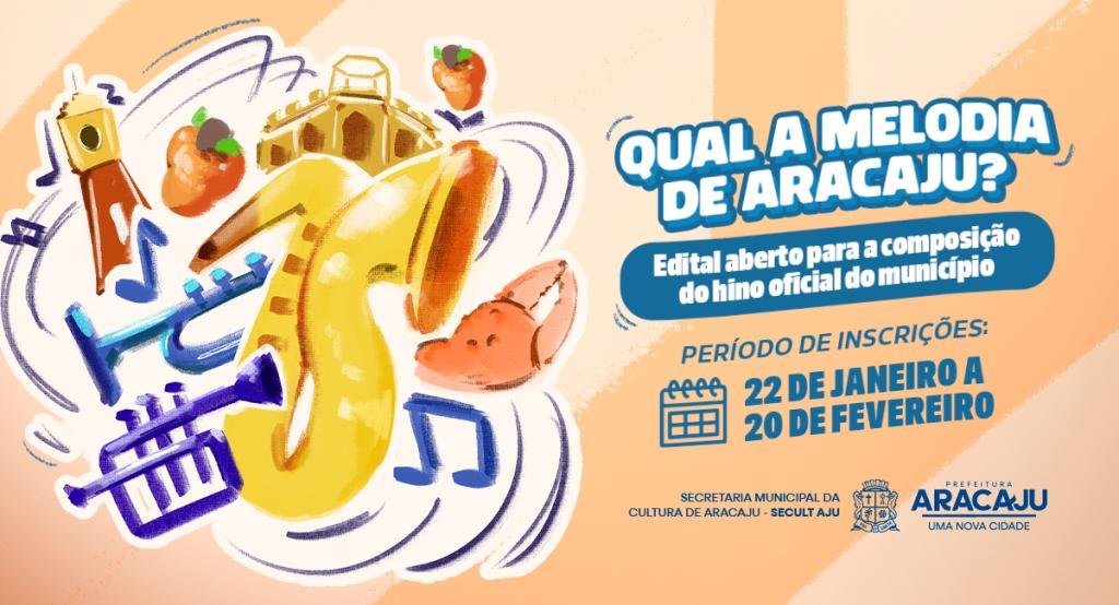 A Prefeitura de Aracaju, por meio da Secretaria Municipal da Cultura (Secult Aju), publicou o Edital de Chamamento Público nº 01/2026 para a criação do Hino Oficial do Município.