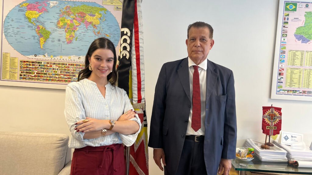 O presidente da FCCE, Adair Roberto Carneiro, e CEO da TurisMall, Mônica Medeiros se reuniram na manhã desta terça-feira (13) para alinhar os detalhes do Encontro do Corpo Diplomático, que será realizado no dia 12 de março, dentro da plataforma TurisMall, na ACRJ, Rio de Janeiro.