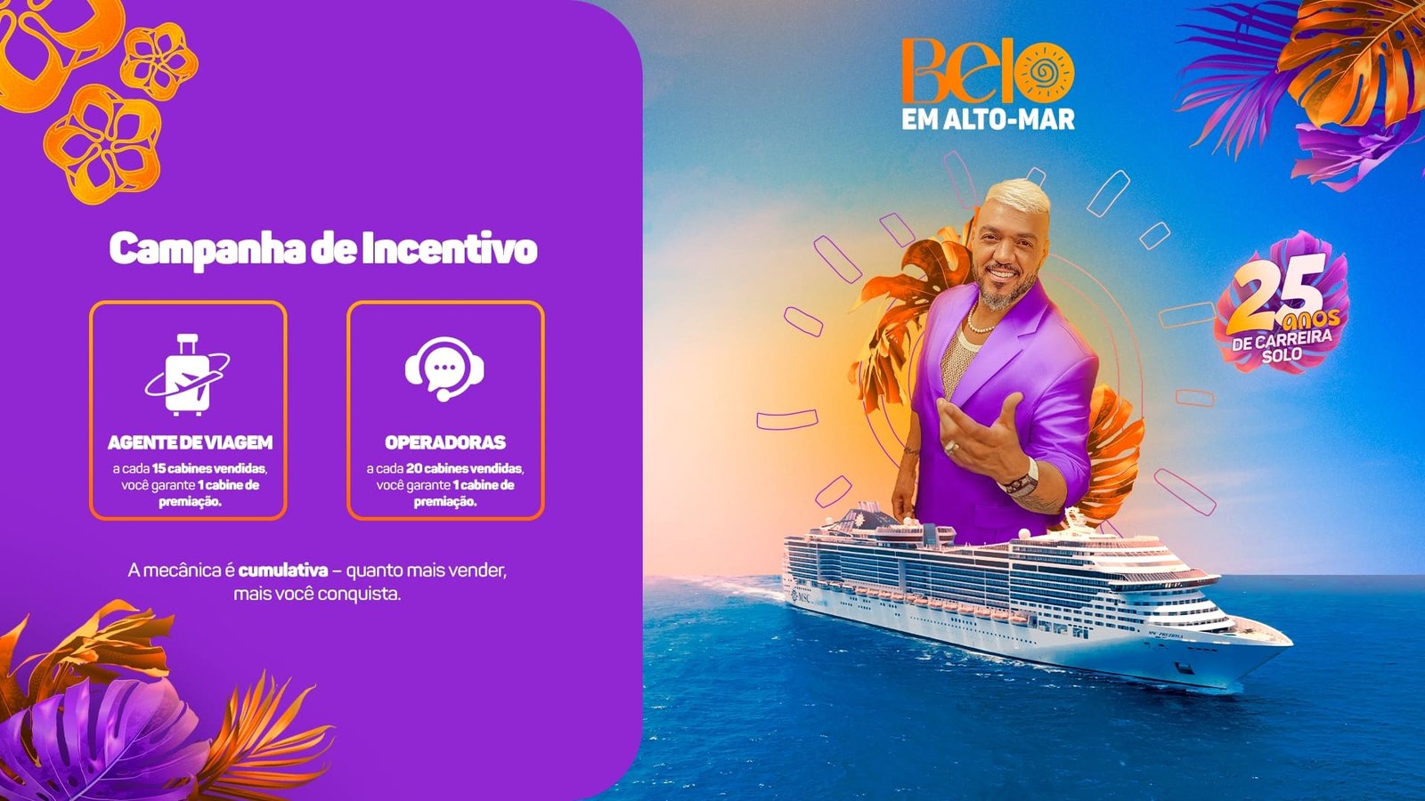 Mais do que ampliar os ganhos com a venda de um cruzeiro exclusivo, os agentes e operadoras têm a oportunidade de transformar seu desempenho em experiências a bordo do Navio do Belo, que une turismo, entretenimento e música em alto-mar.