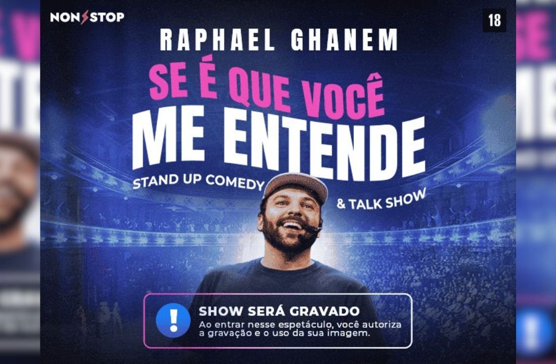O ator e comediante Raphael Ghanem traz a Aracaju o espetáculo de stand-up comedy “Se É Que Você Me Entende”, no próximo 4 de dezembro de 2025, às 20h, no Centro de Convenções AM Malls.