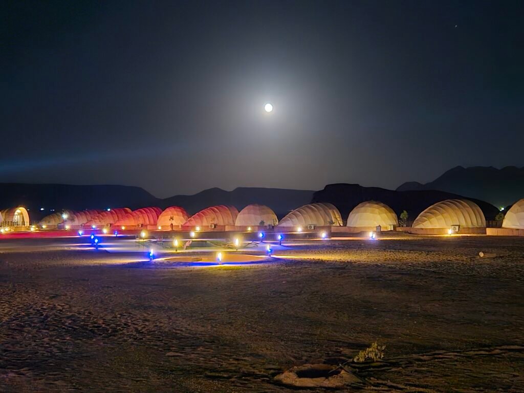 Encerrando o segundo dia do famtour no Shell Luxury Camp, uma opção de hospedagem de luxo na cidade de Wadi Rum, no meio do deserto com conforto e estilo. As acomodações são tendas modernas, equipadas com ar-condicionado, banheiro privativo e varanda.