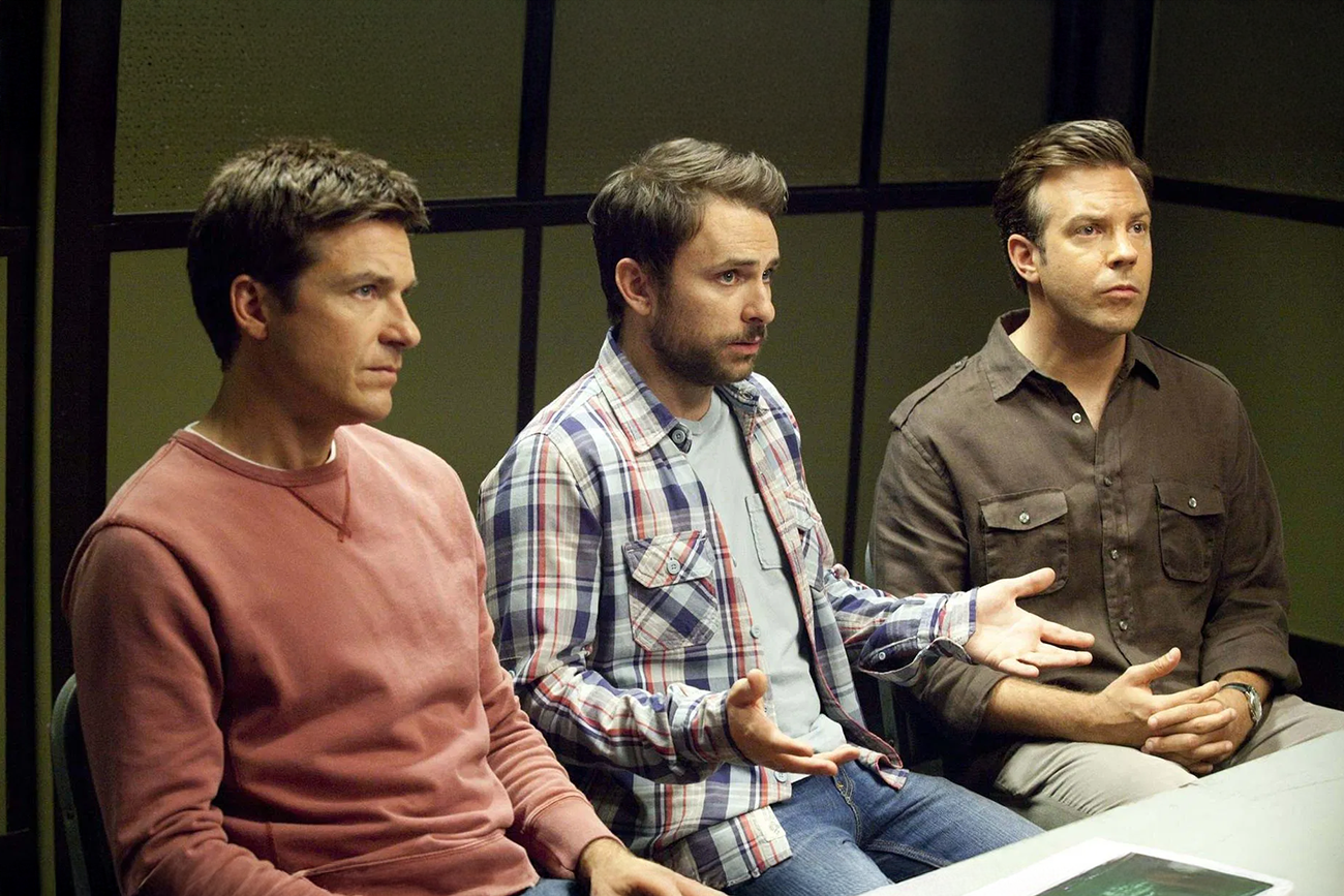 Jason Bateman interpreta o funcionário que acredita seguir todas as regras à espera de reconhecimento que nunca se concretiza. Sua expressão cansada diante de cada promessa vazia ajuda a sustentar a ideia de que a lealdade à empresa se converte em armadilha. Jason Sudeikis, mais expansivo, aposta em sedução e piadas improvisadas para lidar com chefias instáveis, o que o coloca em situações delicadas com famílias de superiores e colegas de escritório. Charlie Day compõe um personagem nervoso, de fala acelerada, que tenta ser correto enquanto se vê empurrado para um jogo muito maior do que consegue controlar.
