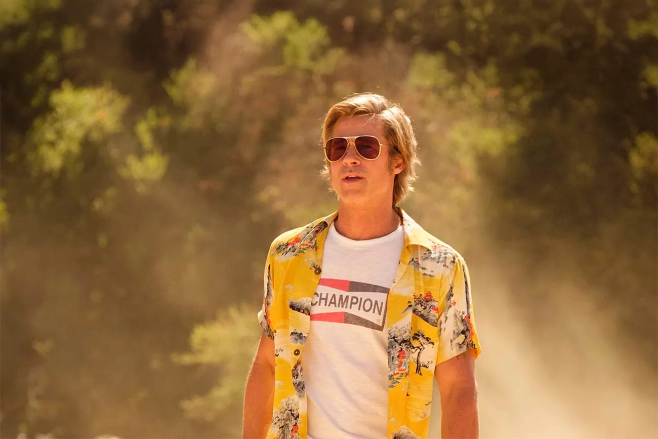 Cliff Booth, interpretado por Brad Pitt, funciona como espécie de satélite emocional desse universo. Ele circula por Los Angeles com a calma insolente de quem sabe que já perdeu quase tudo e, portanto, não precisa provar nada. Há uma liberdade quase filosófica no modo como conduz suas escolhas; liberdade que se contrapõe à rigidez de Rick, eternamente amarrado às expectativas da indústria. Quando Cliff estaciona na velha casa de estúdios onde grava dublês de segunda categoria, o filme desmonta a mitologia dos bastidores: não existe glamour, apenas sobrevivência. Ainda assim, Brad Pitt transforma cada gesto em algo enigmático, sugerindo um passado que o filme prefere manejar como fantasma, não como explicação.
