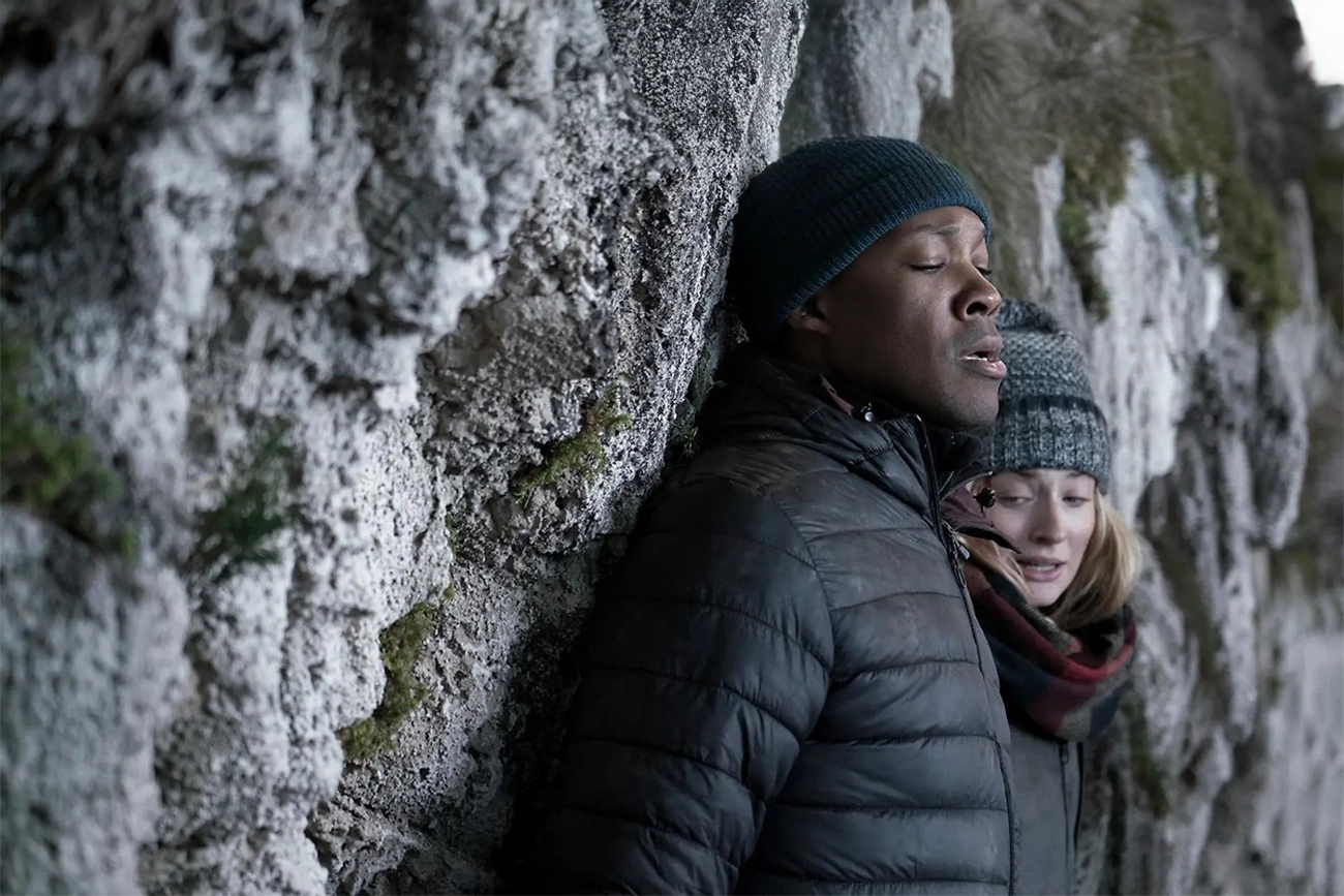 “Tempestade“ constrói sua premissa a partir de Jane, interpretada por Sophie Turner, que abandona um tratamento psiquiátrico sem convencer ninguém. Nem a equipe médica, nem o espectador, de que está apta a retomar a própria vida. A personagem se desloca como quem caminha sobre um terreno que cede a cada passo: instável, errática, presa num impulso autodestrutivo que Turner traduz num olhar sempre à beira do esgotamento. O acidente aéreo que a lança nas montanhas congeladas deveria funcionar como o ponto de inflexão definitivo, mas o roteiro cria um descompasso entre a urgência da situação e o tempo gasto antes de chegar a esse acontecimento central. A inclusão do segmento no centro de tratamento parece funcionar apenas como um prólogo estendido, cuja função narrativa poderia ser facilmente absorvida por diálogos posteriores entre Jane e Paul, vivido por Corey Hawkins.