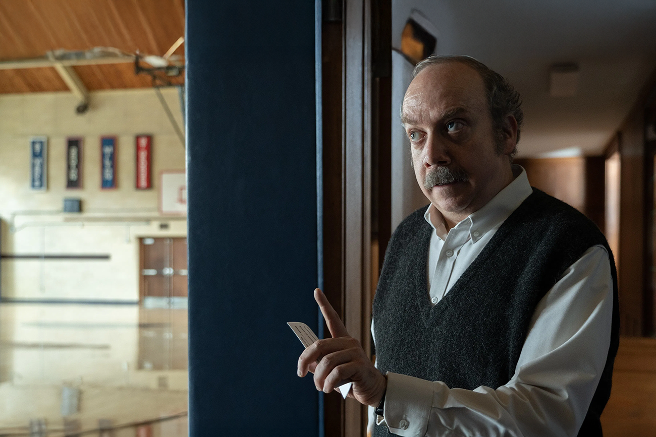 A situação inicial estabelece forças claras: autoridade e resistência, dever e tédio, luto e rotina. O professor, vivido por Paul Giamatti, conduz as primeiras cenas com uma combinação de rigidez corporal e ironia cortante que define a hierarquia. O aluno interpretado por Dominic Sessa responde com esperteza e desprezo pela etiqueta escolar, movido tanto por orgulho quanto por abandono. Da’Vine Joy Randolph, como a cozinheira, evita discursos sobre o próprio sofrimento; a personagem prefere arrumar prateleiras, controlar panelas e travar a marcha dos pensamentos com tarefas. Alexander Payne filma essas interações com atenção ao tempo morto, às pausas que antecedem pedidos e às respostas dadas por obrigação.