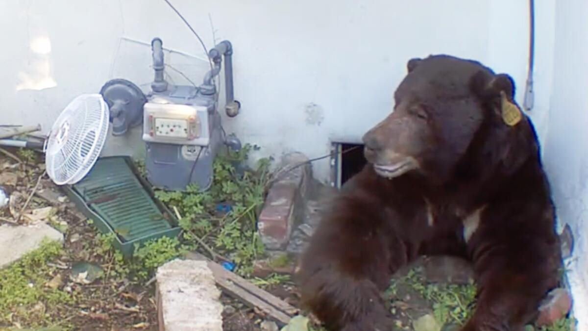 | Um morador da localidade de Altadena, no estado norte-americano da Califrnia, teve um urso morando no poro de sua casa por mais de um ms! Ele entrou em contato com autoridades estaduais de vida selvagem, mas as tentativas de expulsar o urso de 250 kg foram infrutferas. O urso estava causando alguns danos l embaixo, ento, por prudncia, ele fechou o registro de gs antes do Natal. Em seguida, ligou para a Bear League, que lida com esse tipo de situao com frequncia. Eles enviaram os agentes Scott e Dave, que no tm medo de nada. |